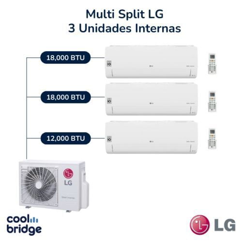 Aire Acondicionado Multi Split Inverter LG de 3 espacios (1 de 12,000 BTU y 2 de 18,000 BTU)