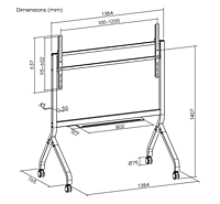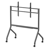 Solución móvil de nivel profesional para pantallas de gran formato. La estructura de acero con doble columna ofrece una base rígida y estable, mientras la altura regulable permite colocar el centro de la pantalla a la altura ideal para presentar o colaborar. Incluye bandeja AV, bandeja para cámara, ruedas industriales con freno y gestión de cables para un acabado limpio.